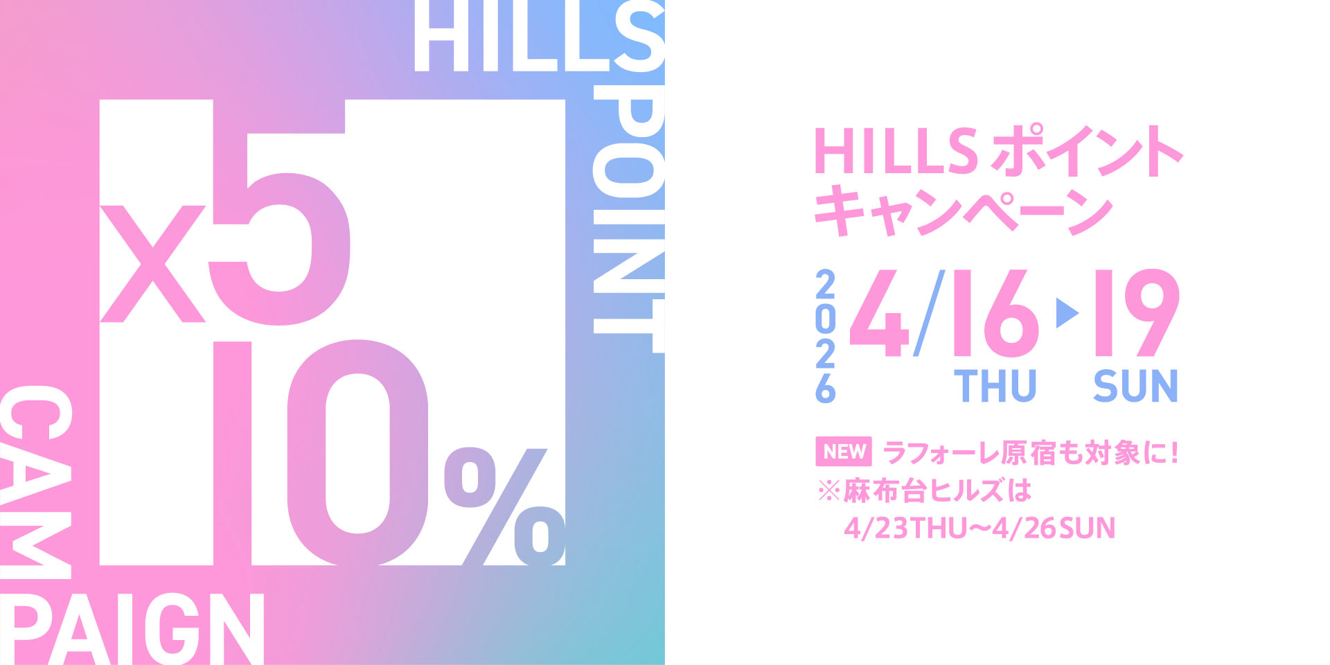 ヒルズポイントが5倍、ヒルズカード MastercardⓇでお支払いいただくとクレジットポイントが10%にUP!※麻布台ヒルズのみキャンペーン期間が異なります。