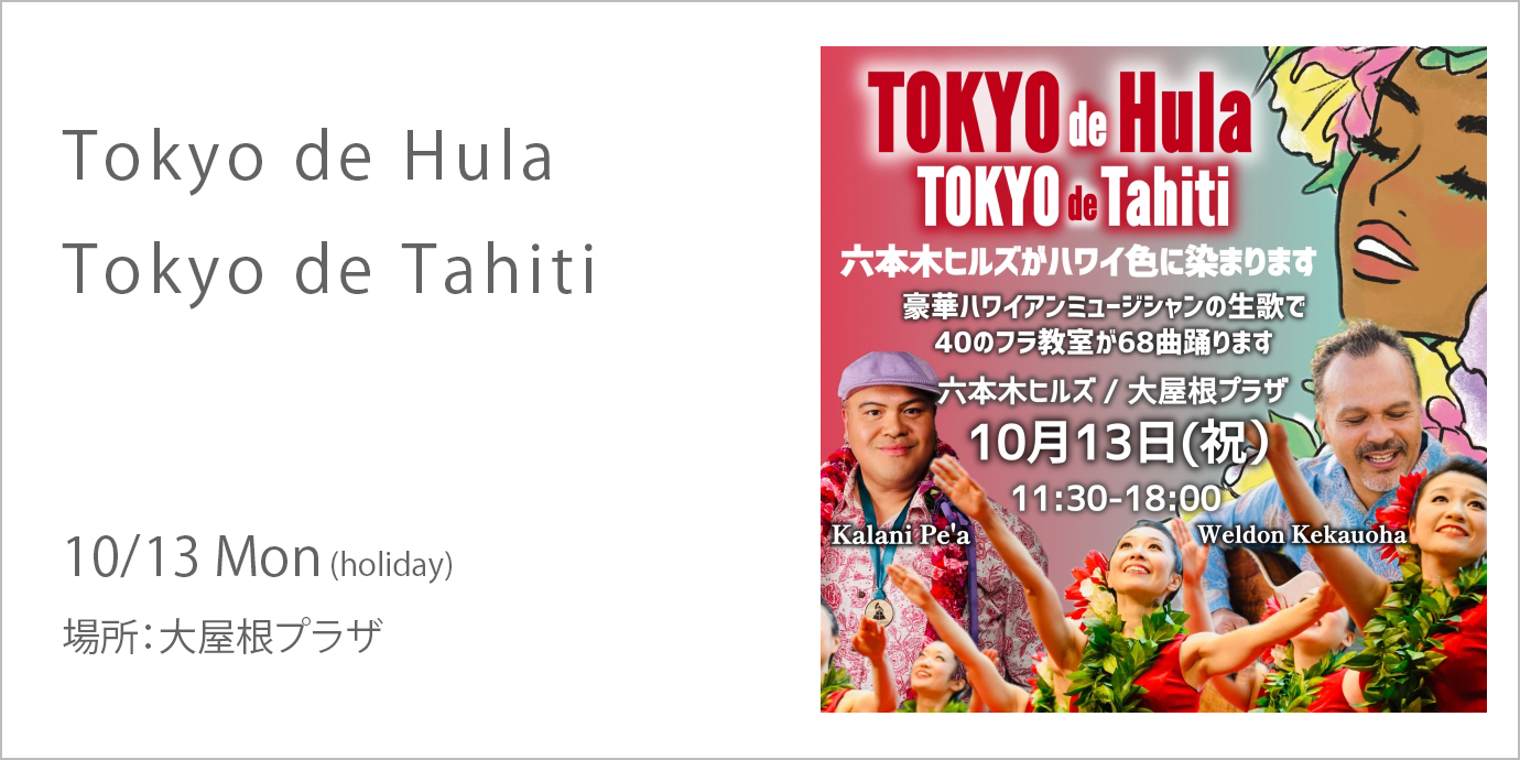 六本木ヒルズがHawaiiの色に染まります。豪華ハワインミュージシャンの生演奏で40のフラダンス教室/928人のダンサーが出演!!合計68曲のダンスを披露する圧巻のフラダンスイベントです。
