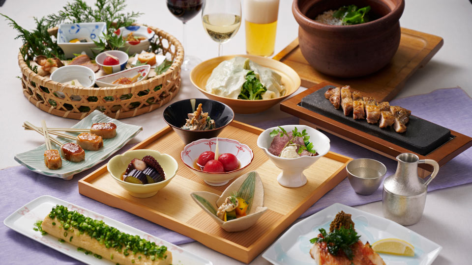 京都の伝統的な「おばんざい」と、旬の素材を活かした炙り焼きがメインの和食店。宴会個室、ダイニングスペース、様々なシーンにも対応しています。黒を基調とした高級感のある和の空間で、正統派の和食をじっくりと味わえます。