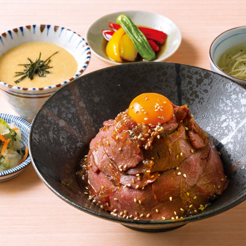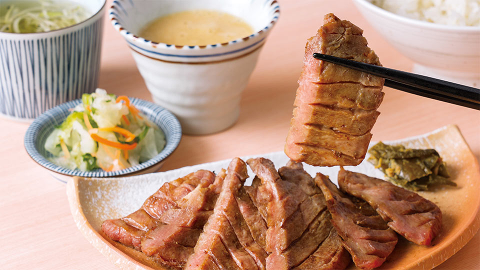 仙台発祥の熟成牛たんを職人が一枚一枚丁寧に焼き上げました。厚切りの牛たんを頬張れば口いっぱいに旨味が広がります。国産米&押し麦をふっくらと炊き上げた「麦めし」、ふわふわの「とろろ」、あっさりとした「テールスープ」もご一緒にどうぞ。