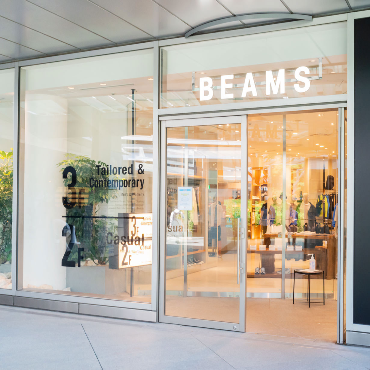 - 六本木ヒルズウエストウォーク。ハイブランドから大人のカジュアルブランドまで、多数の店舗が並ぶこの建物の玄関口で、訪れた人を迎えてくれるBEAMS ROPPONGI。2018年にオープンし、2F、3Fという2つの大きなフロアで構成されるこの店舗は、メンズ、ウィメンズとジェンダーでフロアを分けるのではなく、カジュアル、ドレスというコンセプトでフロアを分けているのが特色です。日本中にあるBEAMSの店舗でも、これだけの規模の複合店舗で、それぞれのコンセプトに特化して発信している店舗はここだけとのこと。