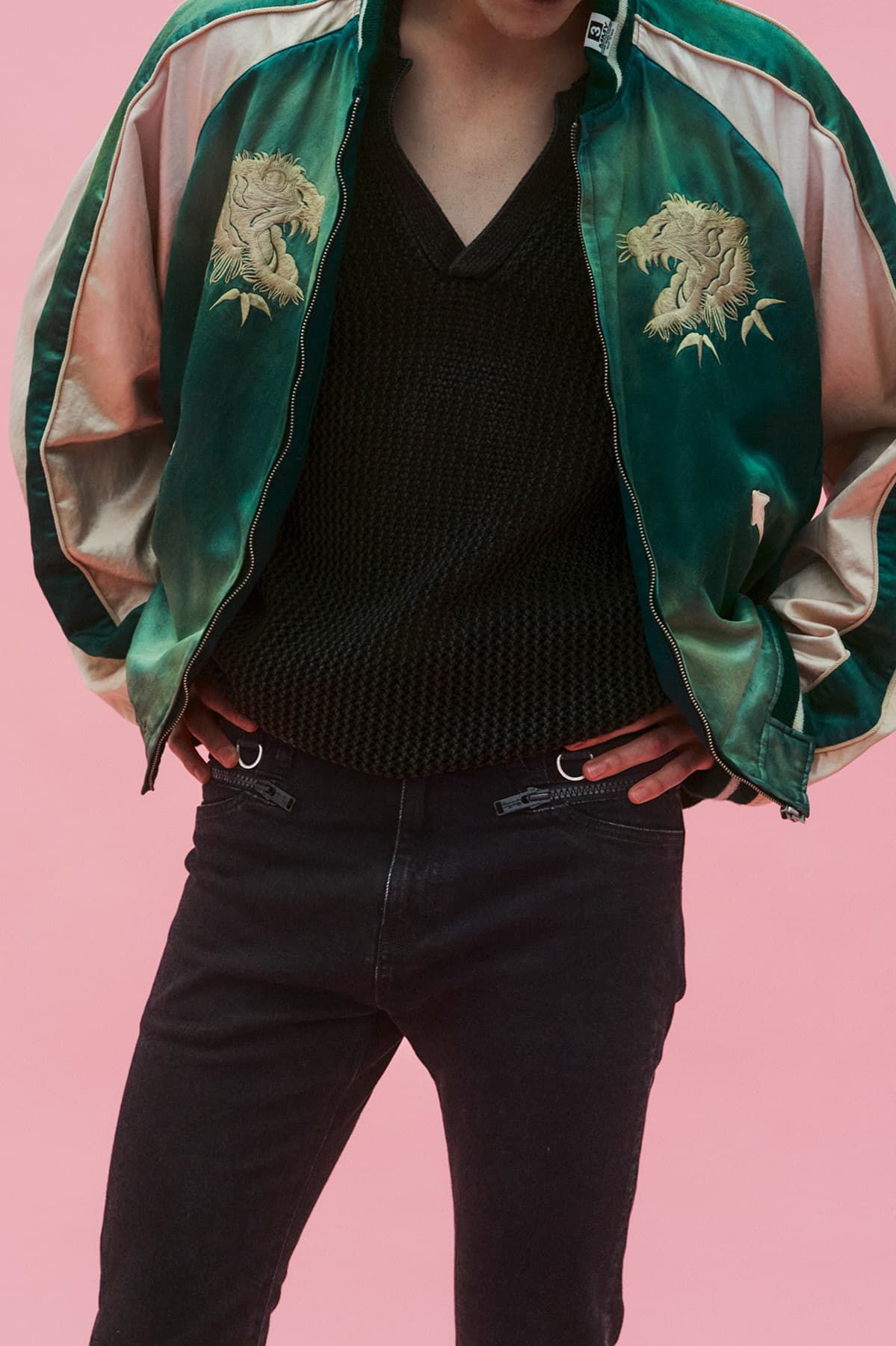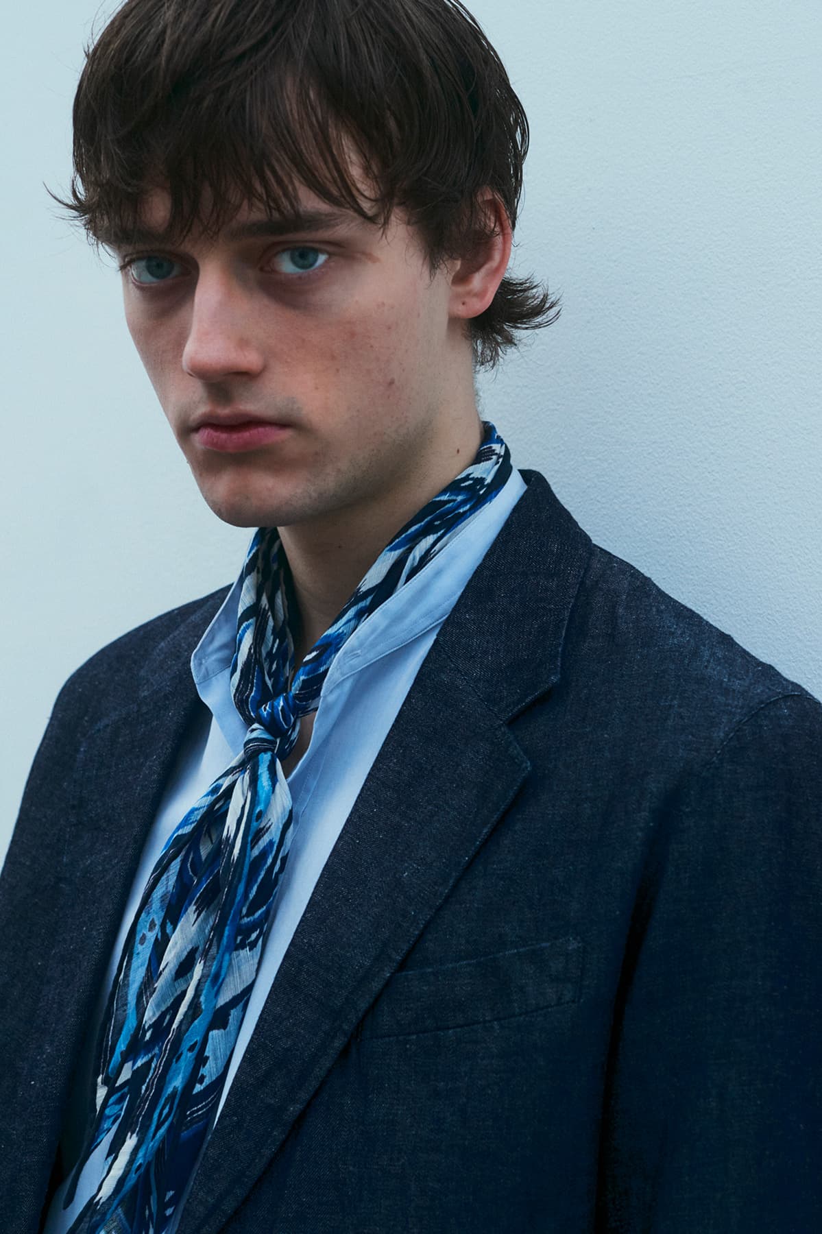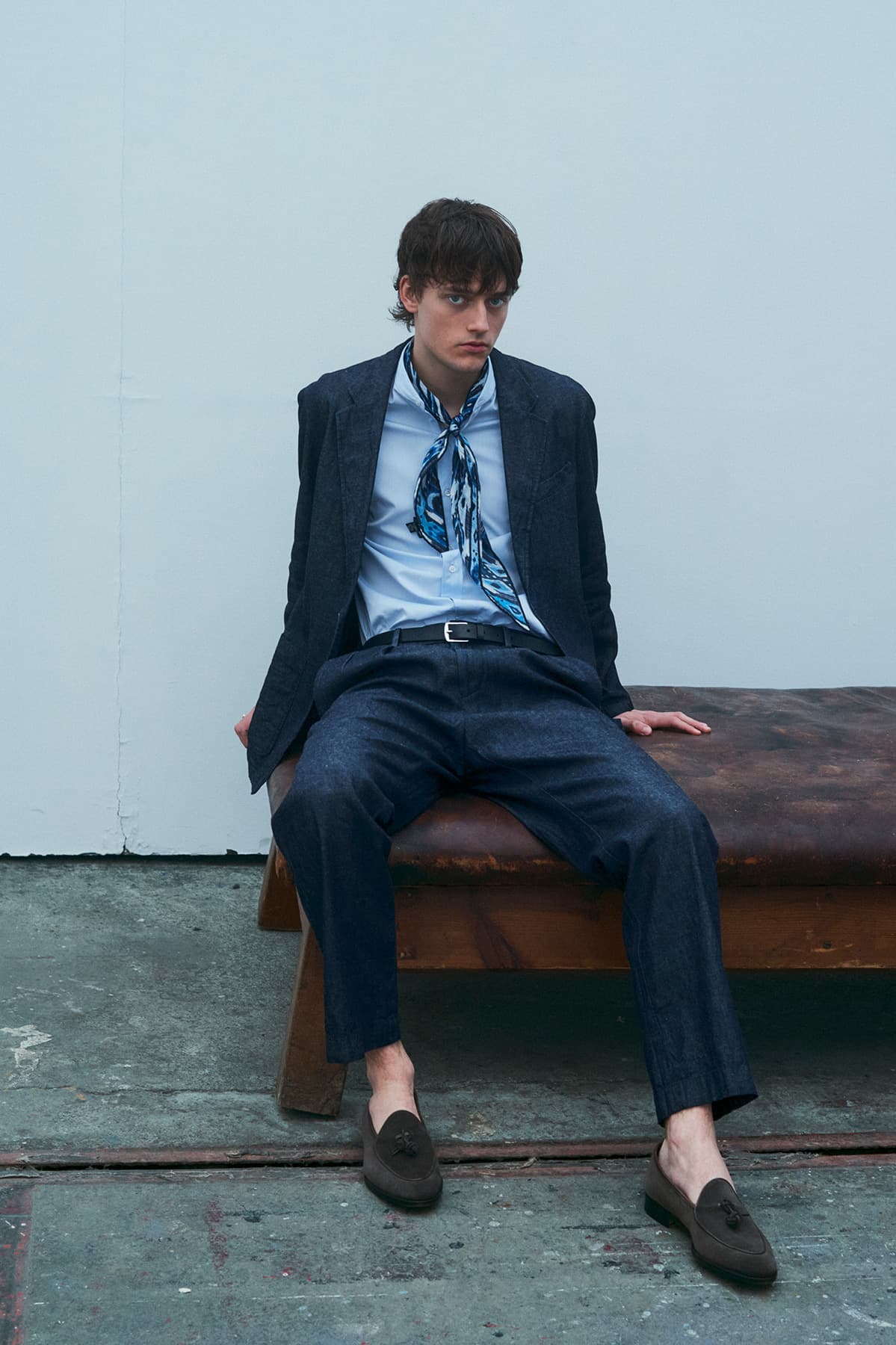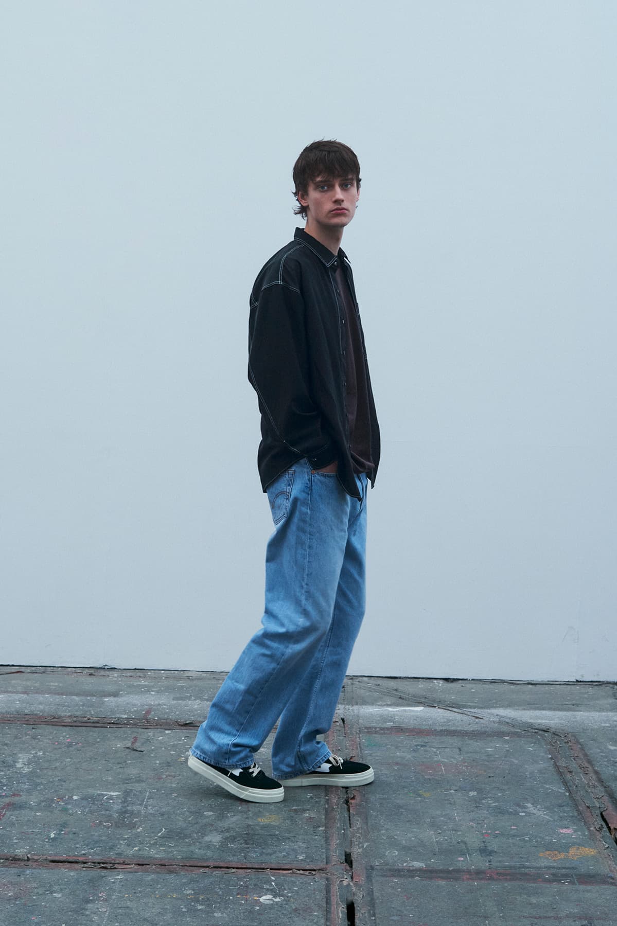 - 荒木大輔(以下A):そうですね。ここ数年デニムは下火でしたもんね。コロナで停滞していたファションの流れが一気に動き出したこともあって変化がついてきたのかな。これまではデニムといえば割とオーセンティックな印象が強かったのですが、近年はそうではないデニムが増えていると思います。オーセンティックに見えるけど意外とワイドで、着るとトレンド感がしっかり出てくるようなアイテムが多い気がしますね。今回は、これから夏に向かって気持ちが軽くなっていくタイミングの提案として、色使いや、程よいルーズシルエットなどで「軽やかさ」を意識したスタイリングにしました。