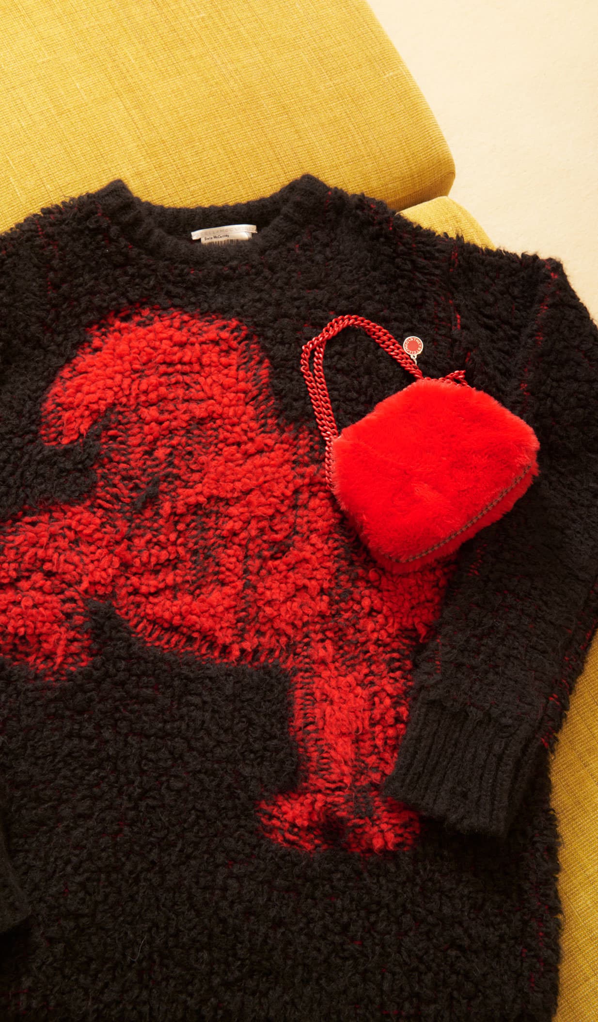 - 一ツ山 佳子(以下H):ワクワクするホリデーシーズンならではの “フワ・モコ・キラ”な品を選びました。デイリーユースで着られる服や実用性あるバッグなどではなく、持っていて可愛い遊び心のある服や小物などのアイテムですね。クリスマスのキラキラしたネオンを見ると、普段なら選ばない派手なものにも挑戦したい、楽しみたいという気持ちになる。いつもの自分のルールの中ではあまり買うことのないアイテムだから、ギフトで贈られたらなお嬉しい。もちろん誰に贈ってもらうか、というのもありますけどね(笑)。
