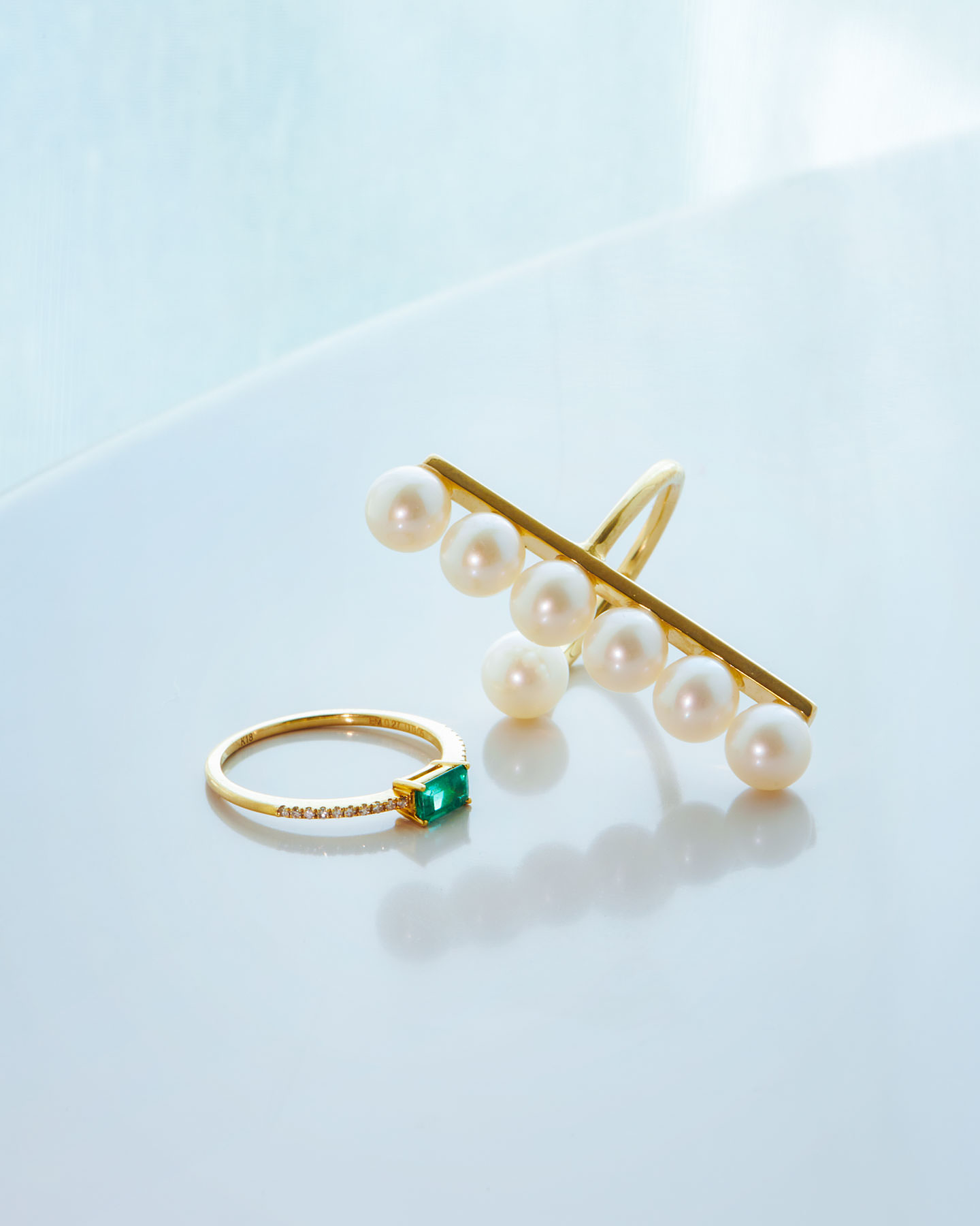 - K : 色はたくさん使わずに3色まででまとめるのが好きです。シンプルなものばかりなんですけど、わさわさと色が入ったりカラフルなものより、金や銀一色、プラス石の色を入れるくらいの感じで選びました。