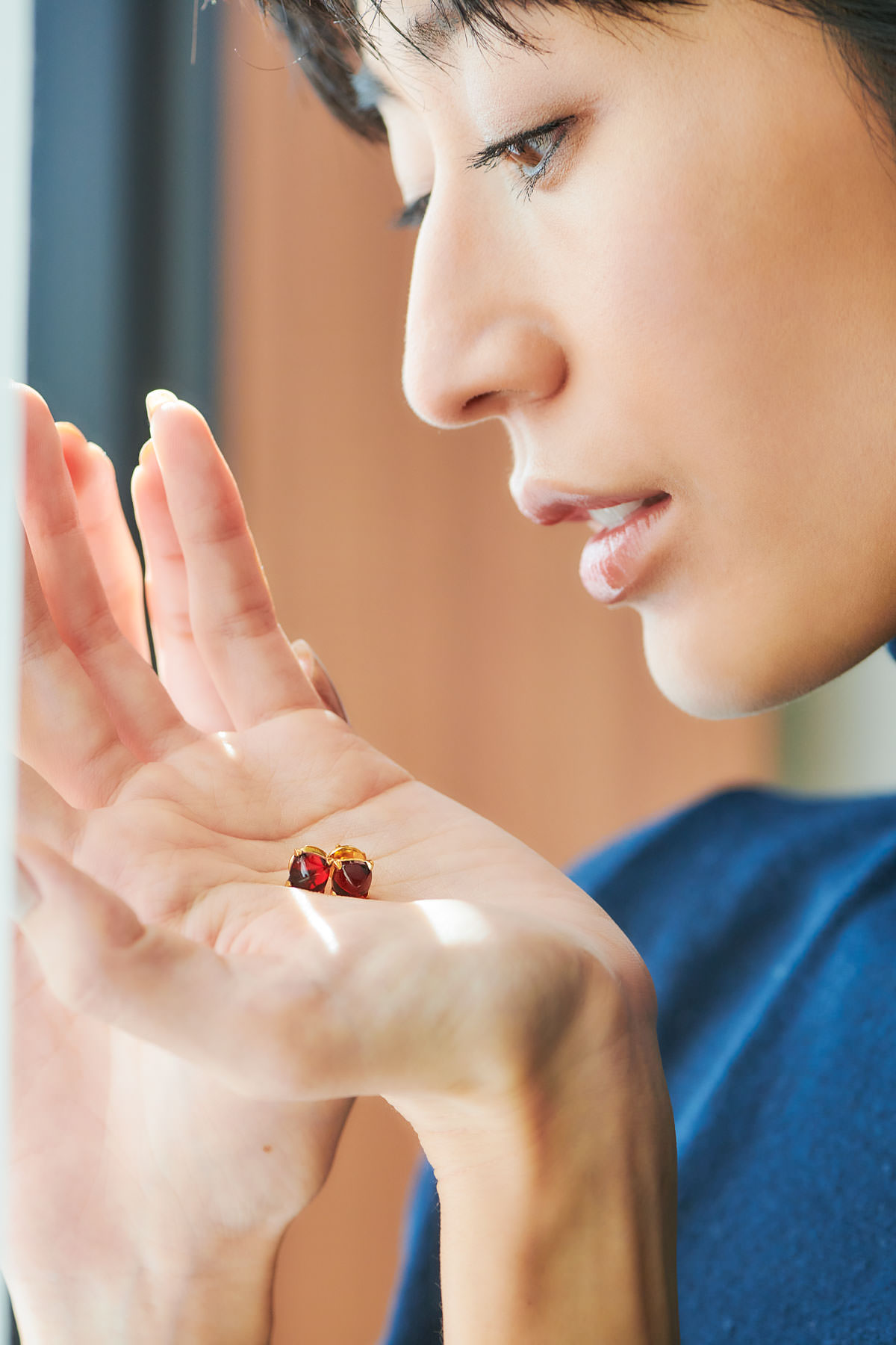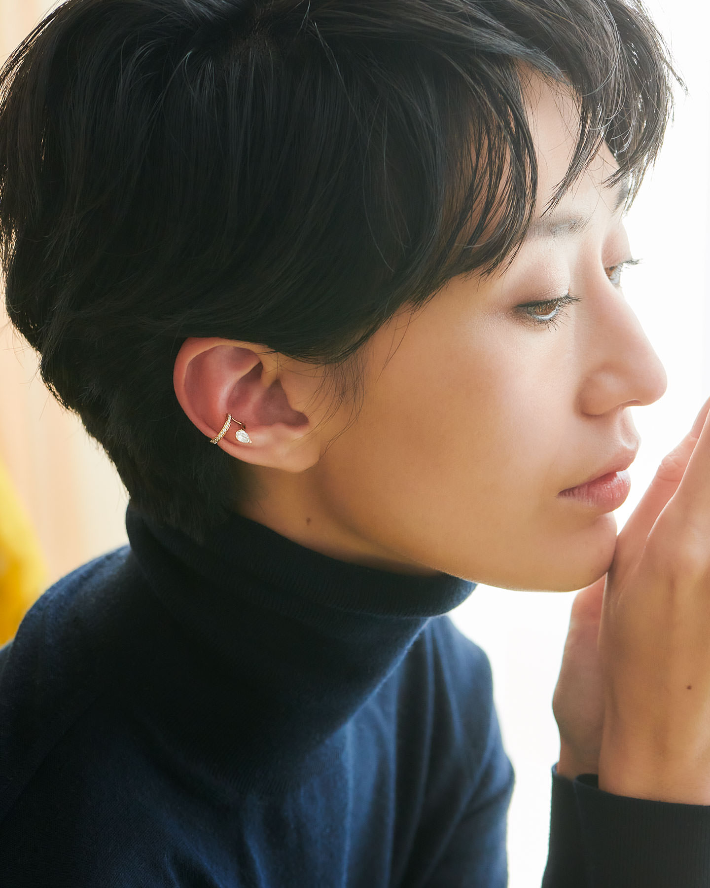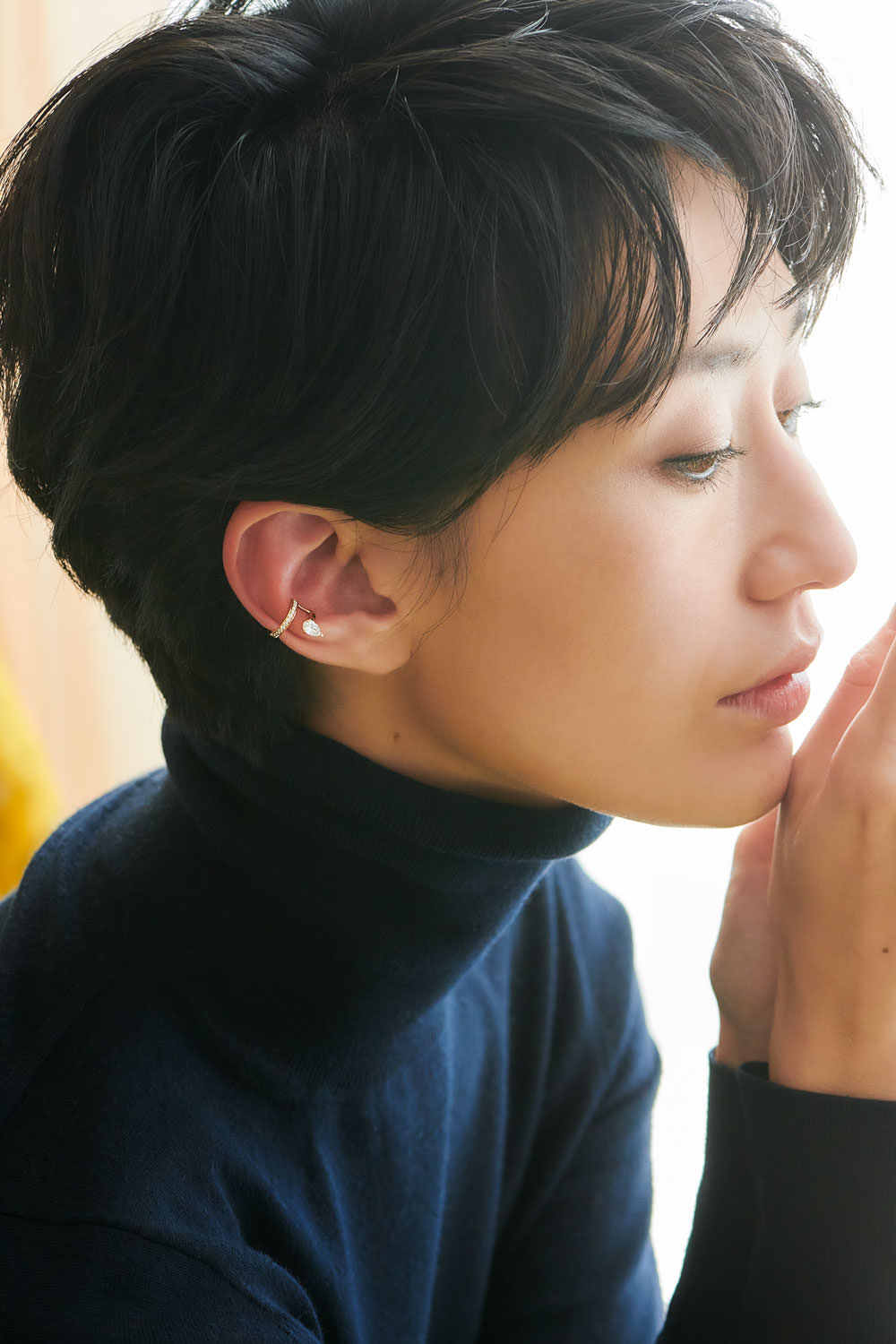 - K : ピアスが好きです。ヘアスタイルがショートカットということもあって、なんとなく、ないと耳周りが寂しくなってしまうので。自分で買うアイテムはピアスが多いですね。