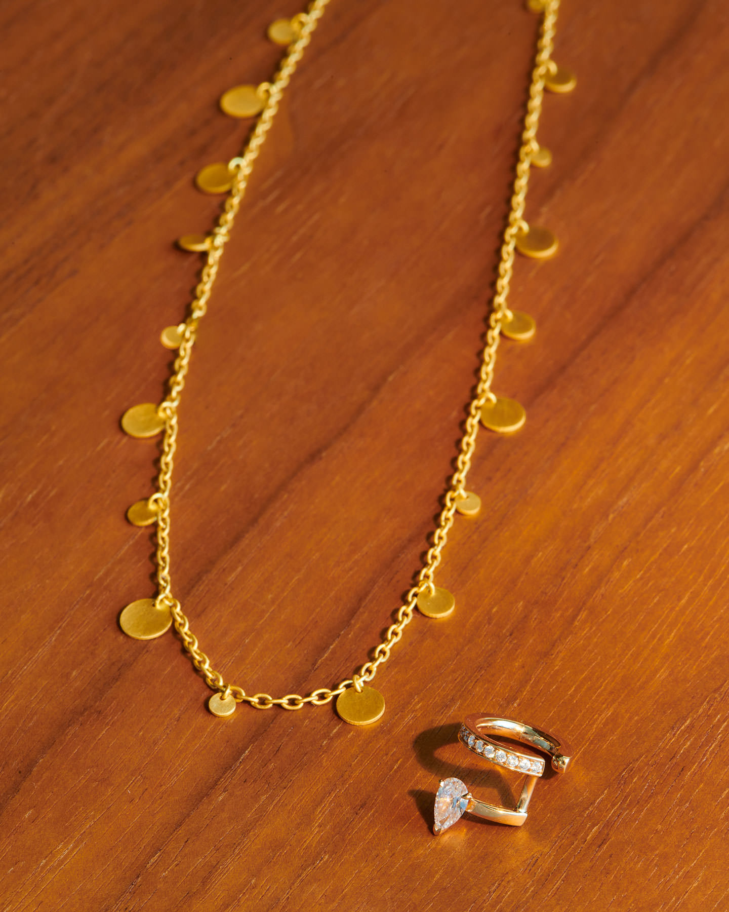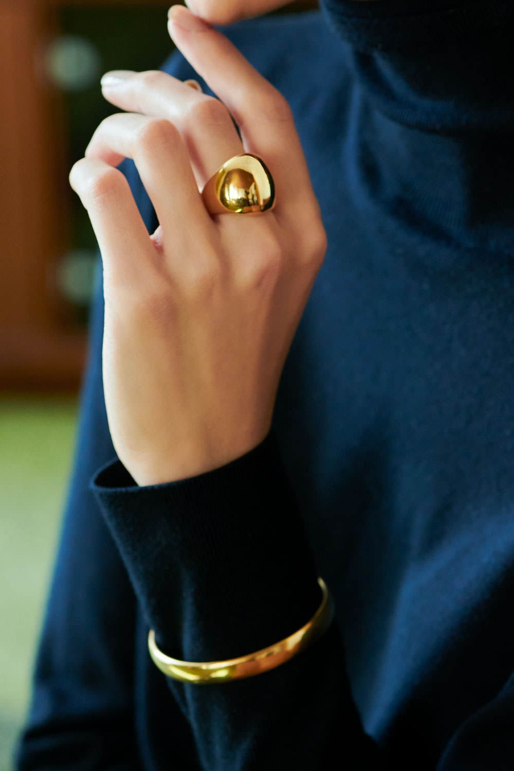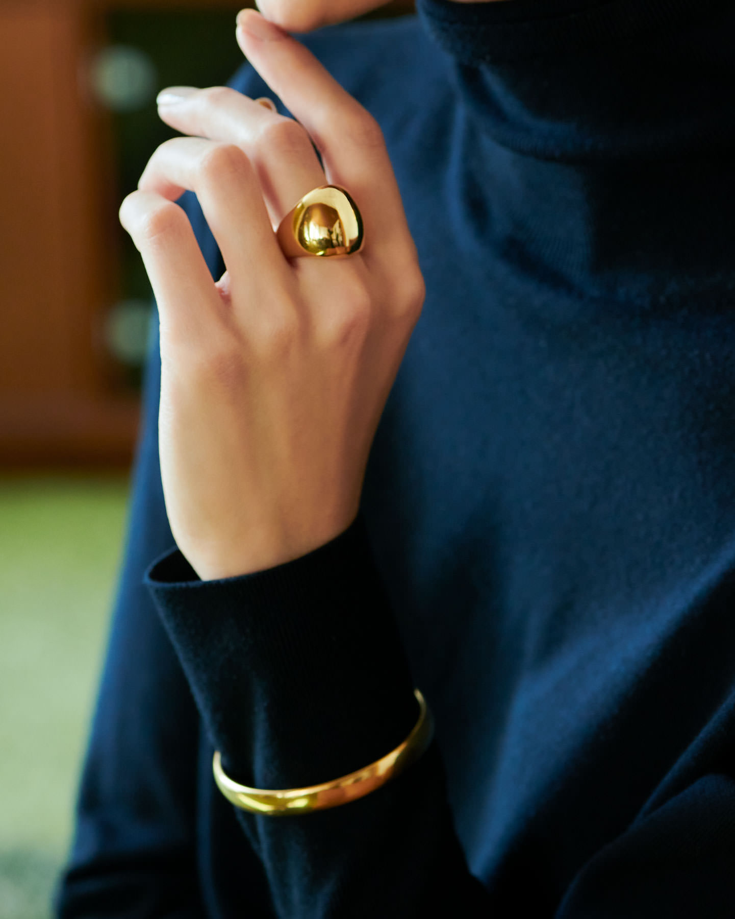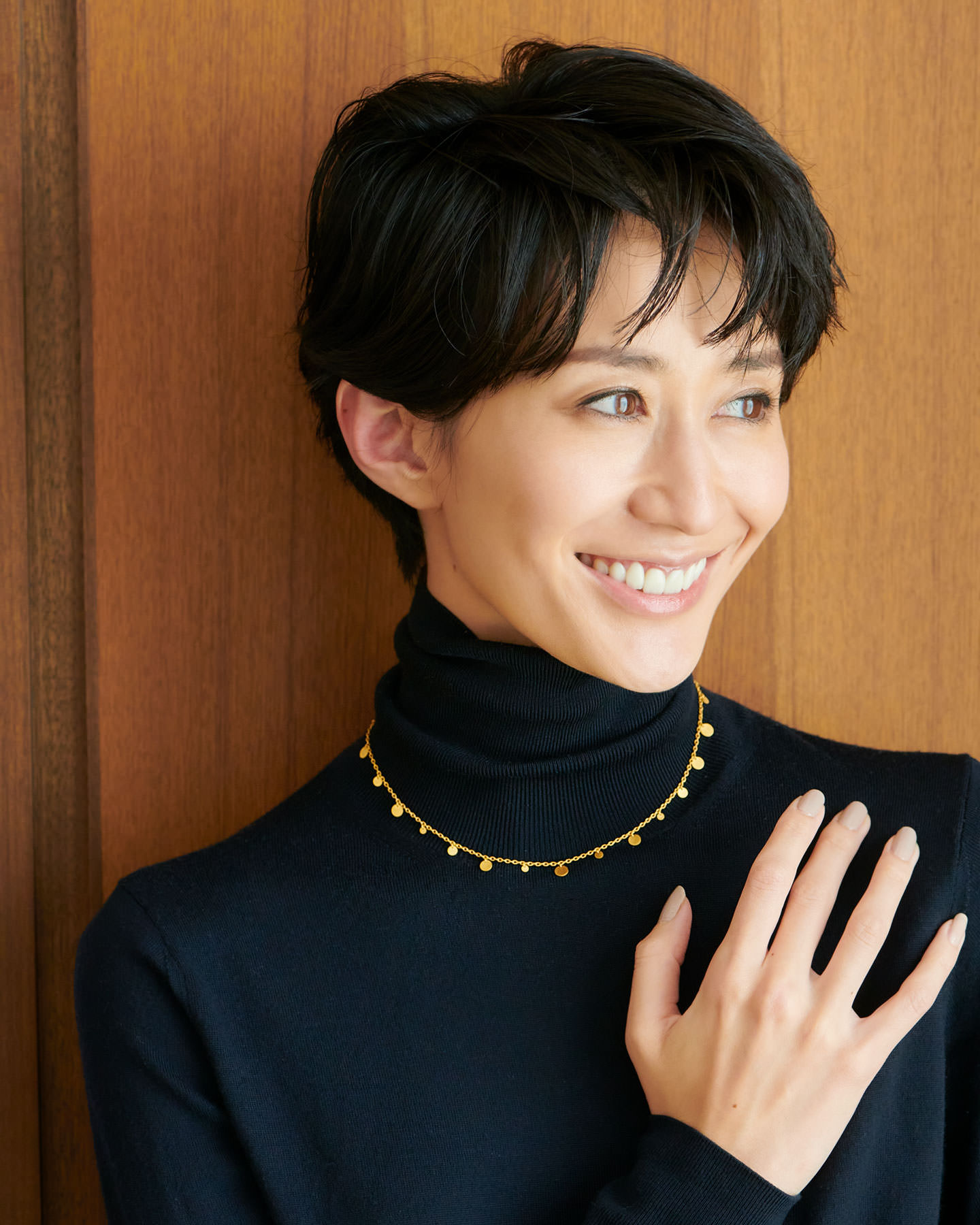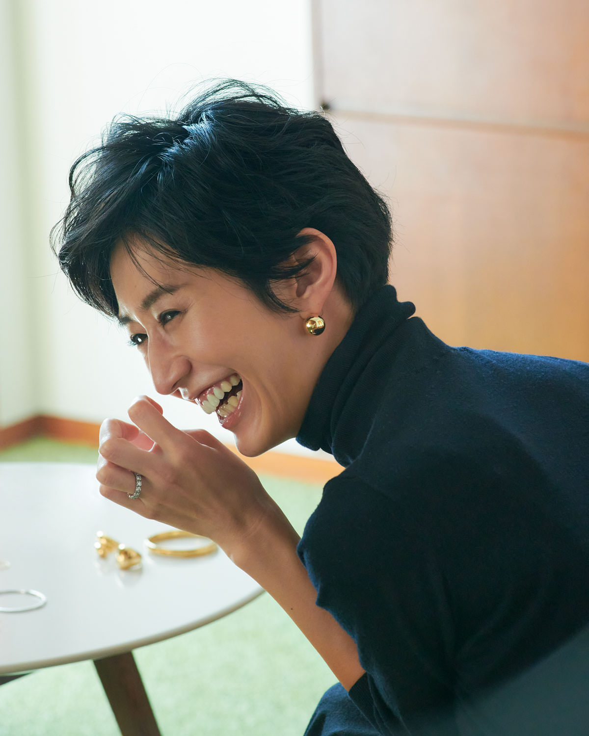 - K : 最後に考えます。私はあまりジュエリーの種類を変えないんですよね。大きく分けるとしたら、シルバーかゴールド。そのふたつを洋服に合わせて「今日はシルバーが合うかな」とか、「ゴールドが合うかな」って考えて決めています。どんなカジュアルなお洋服でも、少しでも華やかに彩ってくれる一点キラッとしたものが好きですね。それだけでエレガントで華やかになりますから。