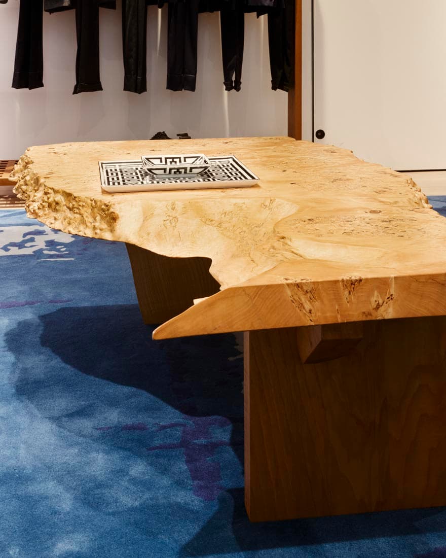 - 秋の香りが立つけやき坂通りに、新たにローマの風が流れ始めました。辿る先には、2025年9月にオープンしたばかりのブリオーニの新店舗。イタリア・ローマで誕生した世界最高峰のテーラリングブランドならではの優雅な佇まいで、柔らかな光を放ち、街ゆく人が心惹かれる外観となっています。大きなウィンドウの内側から溢れる温もりに誘われて中に入ると、そこに流れるのはイタリアのエレガンスと日本の和が溶け込む上品で贅沢な時間。店内では、暖かみのある木材やイタリア産の大理石、1950~70年代のイタリアンヴィンテージ家具をはじめとする選び抜かれたイタリア製のインテリアたちが迎えてくれます。また、日本人アーティスト・花房壽夫氏によって手がけられた一枚板の木のテーブルは、素材と造形の美しさを通じて静寂な和のムードを表現。“第二の我が家” (Home away from Home)をテーマにしているこの店舗は、より温かさとプライベート感を感じられるような空間に。洗練された国際性と感度の高いカルチャーが共存し、国内外から多くの人が訪れる六本木という地に、新たなストーリーを生み出そうとしています。