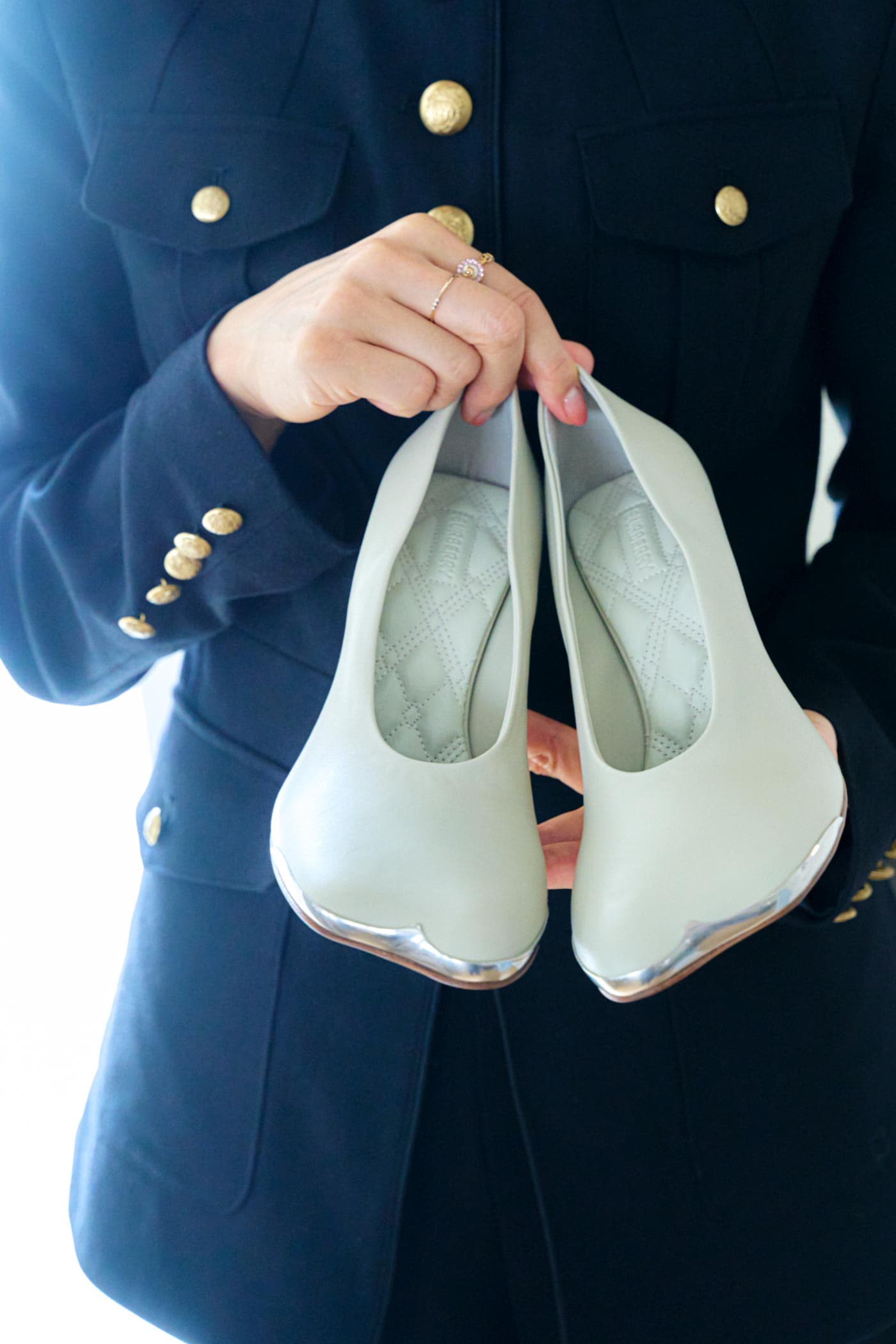 - H : トウが丸くなったデザインなど、存在感がある靴に惹かれます。襟付きのワンピースなど、カッチリとしたお洋服に対して、華奢すぎる靴よりも、重みのある靴の方がバランスが取れるんです。今季はそんなボリュームあるものが多く展開されているので注目しています。脚が綺麗に見えるのもポイントです。
