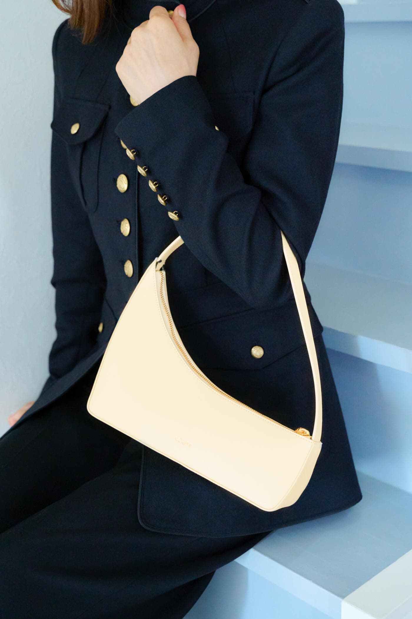 - H : 仕事用、旅行用、ちょっとしたお出かけ用など、使うシーンが思い浮かべられることですね。どんな服を着て、どんなバッグを持って、どんな靴を履いて、どこに出かけるのか。そのシーンが思い浮かんだら、それだけでワクワクします。今季の傾向としては、横長のバッグが多い気がします。今はオールホワイトやベージュなど、明るい色のコーディネートが気分なので、そういったお洋服に合うアイテムを選ぶことも多いです。トレンドというよりは、自分の感覚ですが、そんな直感をいつも大切にしてバッグを選んでいます。