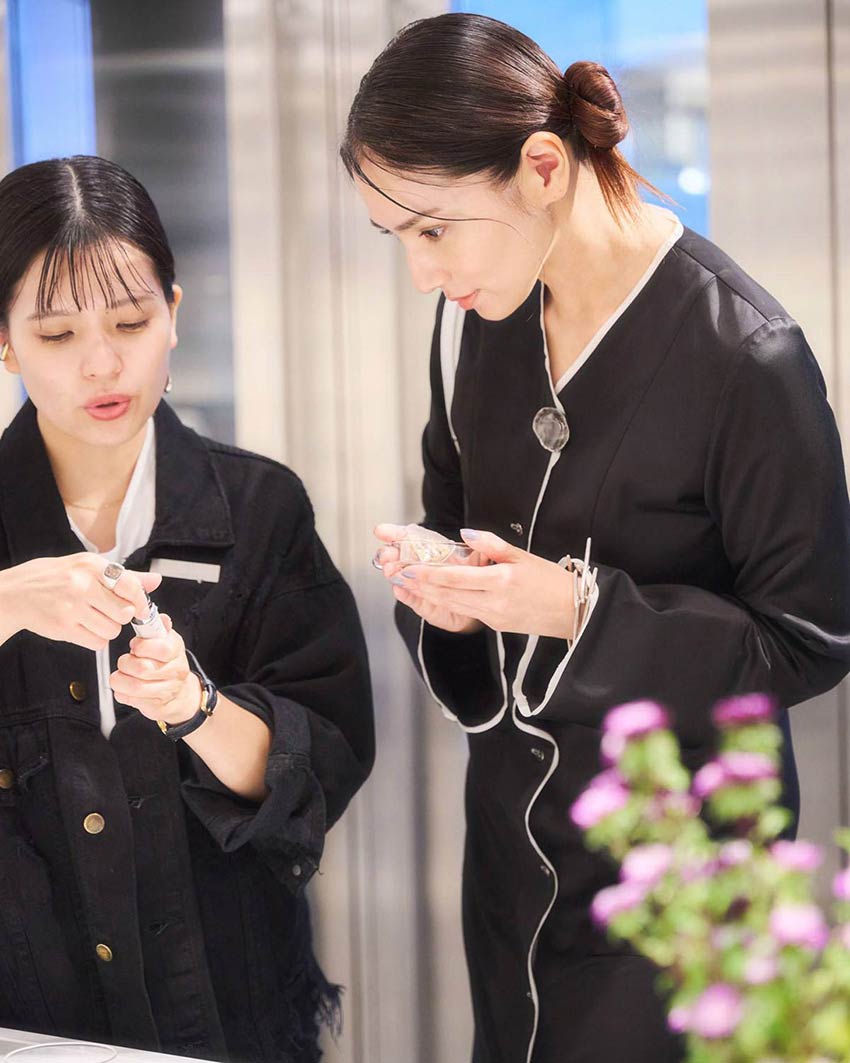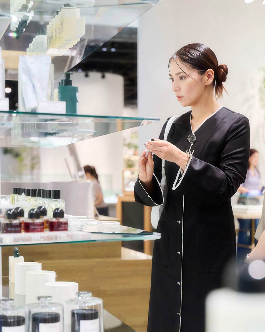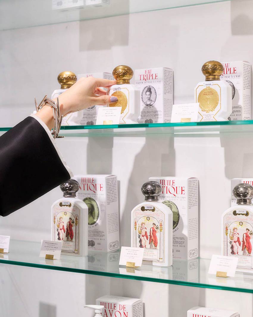 - 「オフィシーヌ・ユニヴェルセル・ビュリーのヘアオイルはずっと愛用しているので、よく購入しに来ます。つけていると必ず誰かに“何の香り?”と聞かれる、ジャスミンとマンダリンのフルーティなベースに、アンバーがアクセントになった香りのオイルがお気に入り。店内にずらっと並ぶ洗練されたボトルデザインのバイレードも気になりました。豊富な種類の香りがあったので、次に訪れた際はゆっくり好きな香りを探してみたいです。」