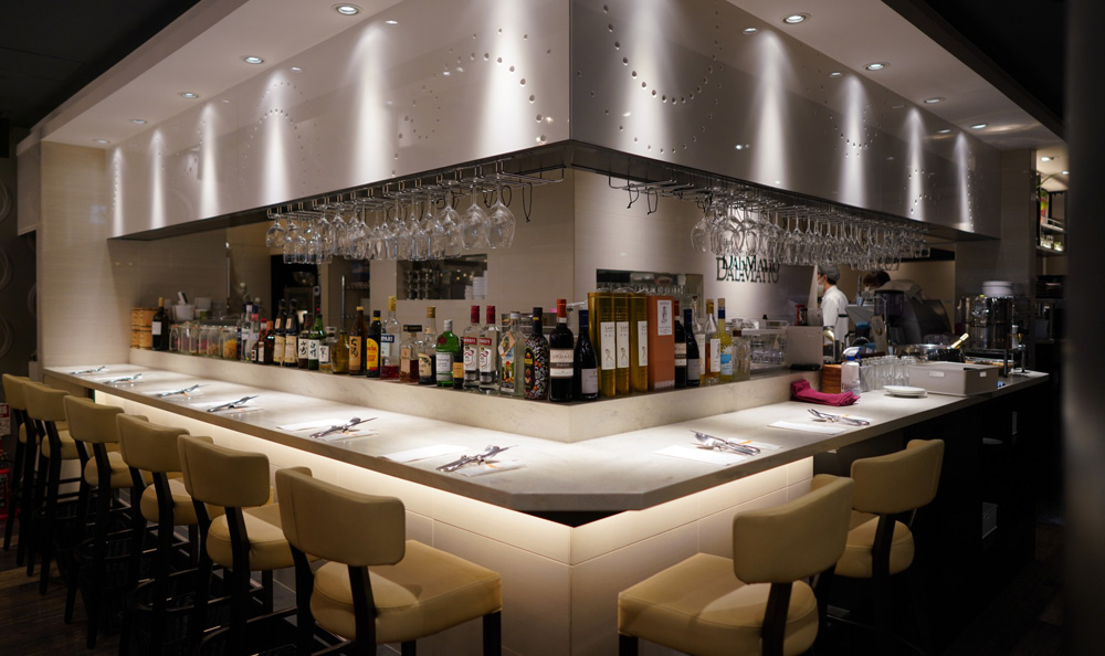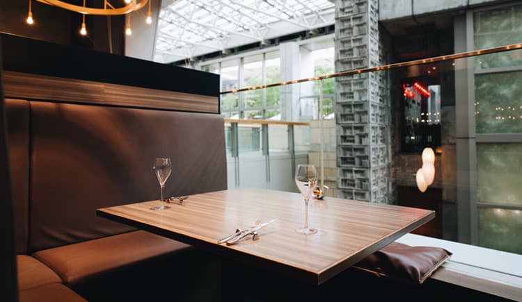 店奥のボックスシートはカップルにも人気のスペース。背もたれが高いので程よいプライベート感を保つことができます。目の前に広がるのはグランドハイアットの灯り。この眺めはヒルズらしさのひとつです。