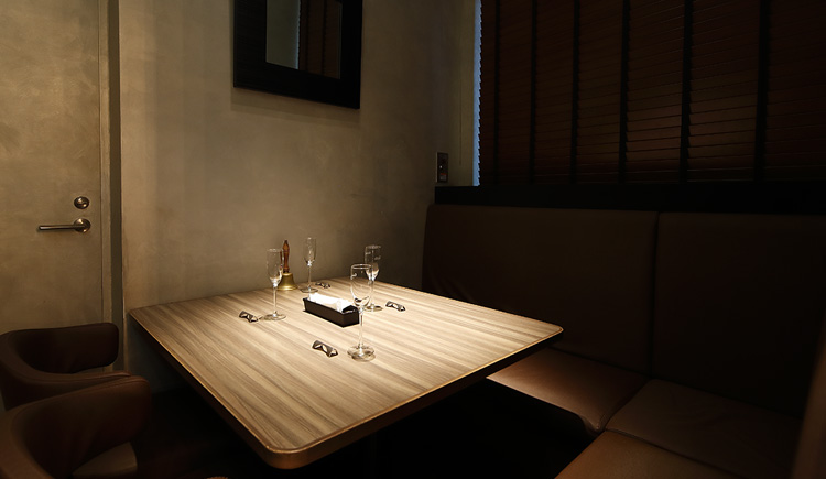 コーナーがベンチシートになった個室はメインフロアの喧騒から切り離された落ち着いた空間。天井が高く、テラスサイドの吹き抜けに面しているので実際のスペース以上の開放感を感じられます。