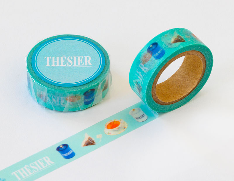 テシエ オリジナルデザインの紅茶の缶や小袋のイラストを散りばめたパステルカラーのテープです。
