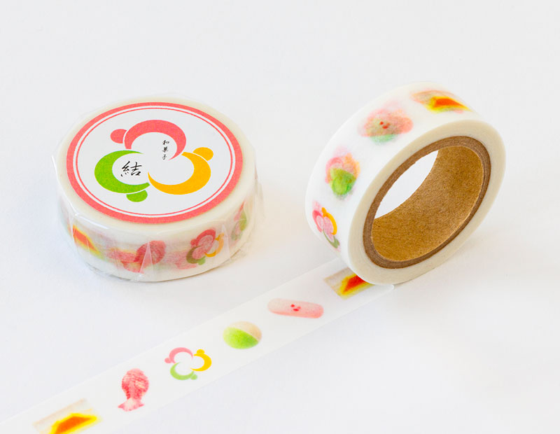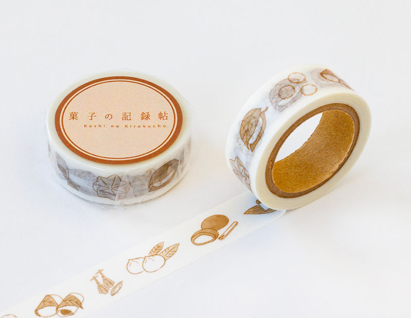 和菓子のイラストのテープ。セピア色の落ち着いたトーンなのでさまざまな場面で活躍しそうです。