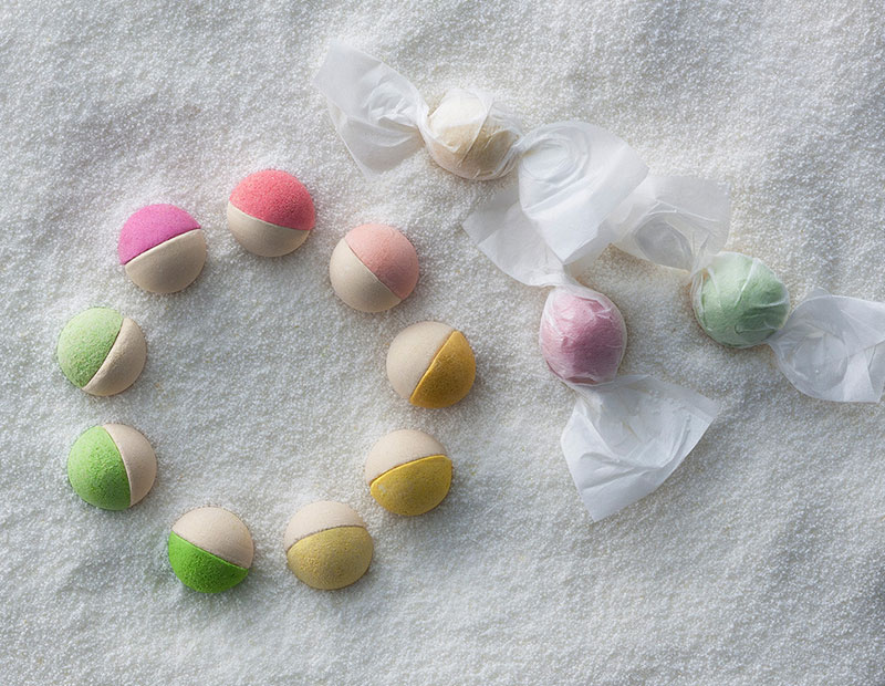 日本ならではの伝統色で仕上げた和三盆。かわいい丸い珠とキャンディーのような包みで、気軽に配りたい時のギフトに最適です。