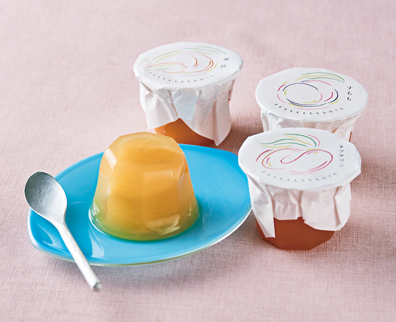 今年の治一郎ゼリーのテーマは〝すもももももももものうち“。白桃、黄桃、ネクタリン、すももの4種のゼリーの詰め合わせは、夏のギフトにも最適な期間限定品です。