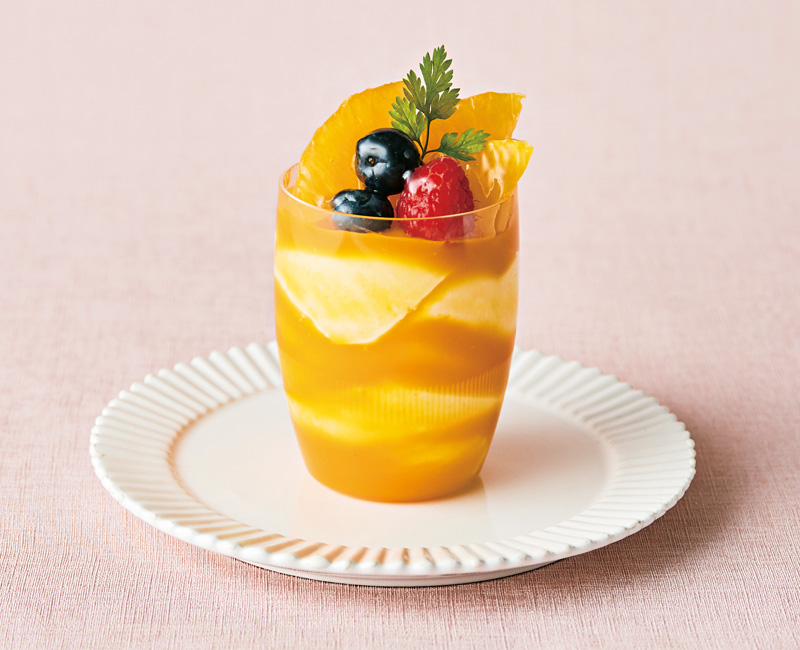 ゼリーやプリンに繊細なデコレーションを施した夏の定番「べリーヌ」は、シャインマスカットやメロンなど6種類。今年は食べ比べもできる小さめのベリーヌ4個セットも登場。