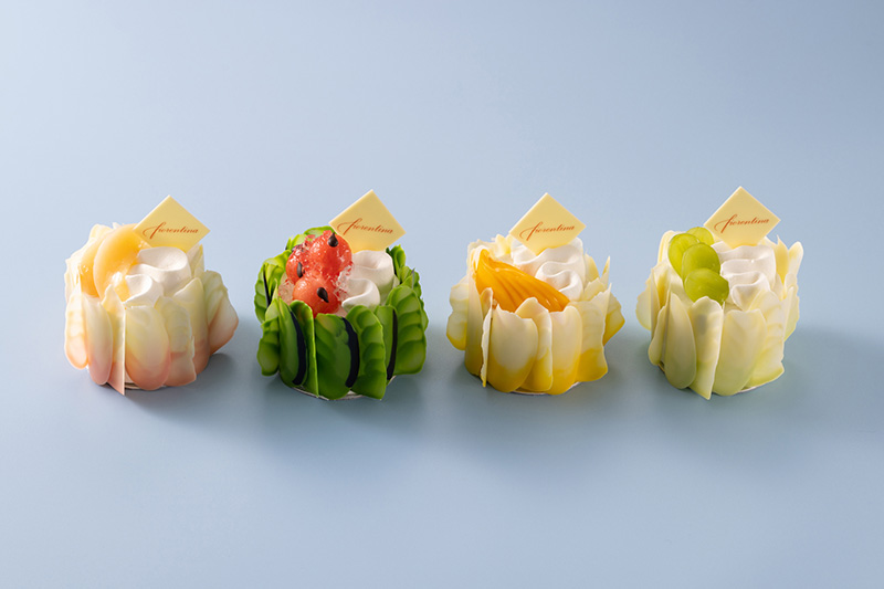 通常より上質な食材を使用し、ワンランク上のケーキへと昇華させた「グランド プレミアム ショートケーキ」シリーズ。今年の夏は、スイカ、マンゴー、シャインマスカット、ピーチの4種類をご用意いたします。みずみずしい旬のフルーツと、リッチで濃厚な味わいのジャージー乳の生クリームやタヒチ産バニラビーンズの香り豊かなクレームブリュレ、そしてふわふわのスポンジ生地が口の中いっぱいに広がります。