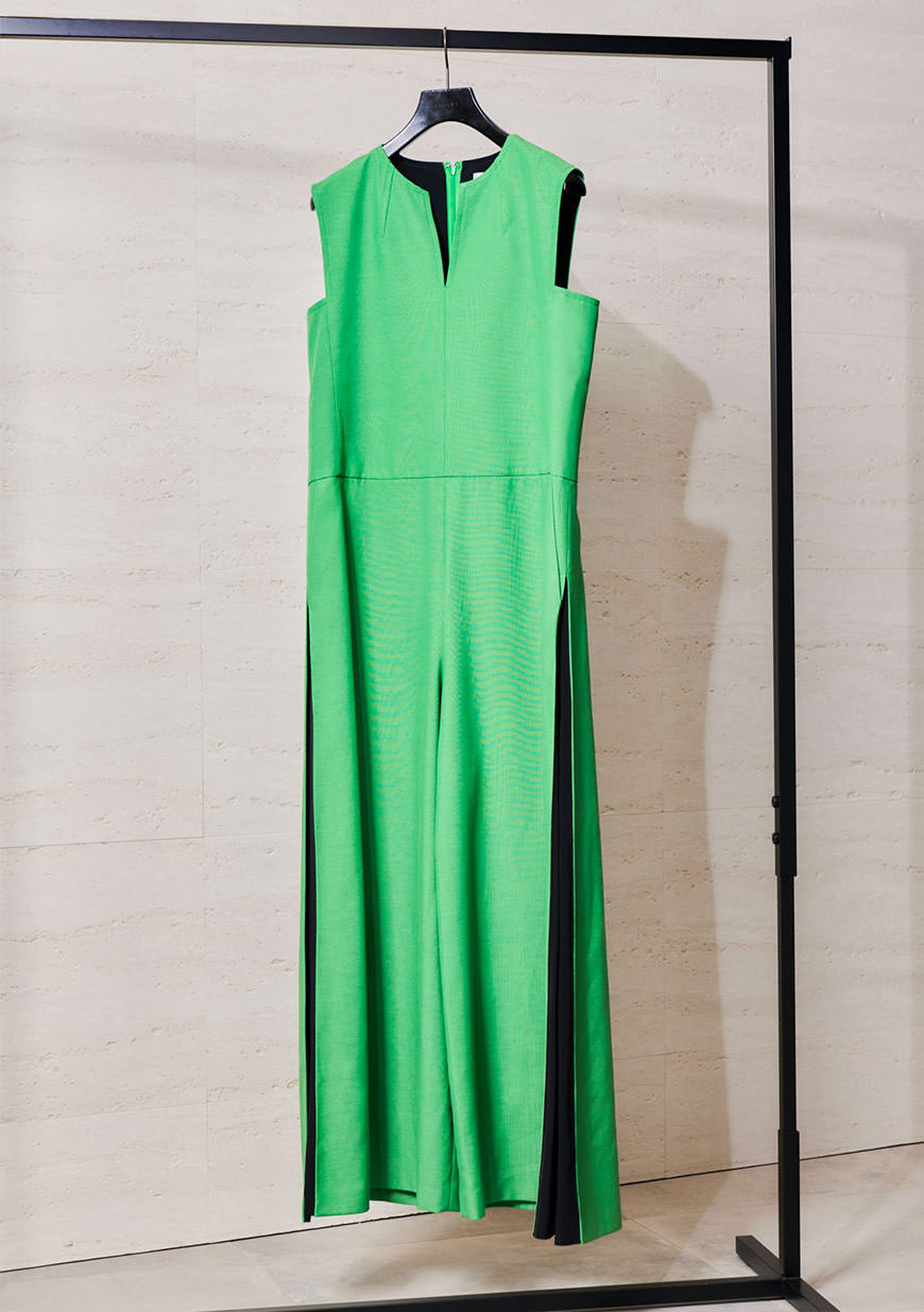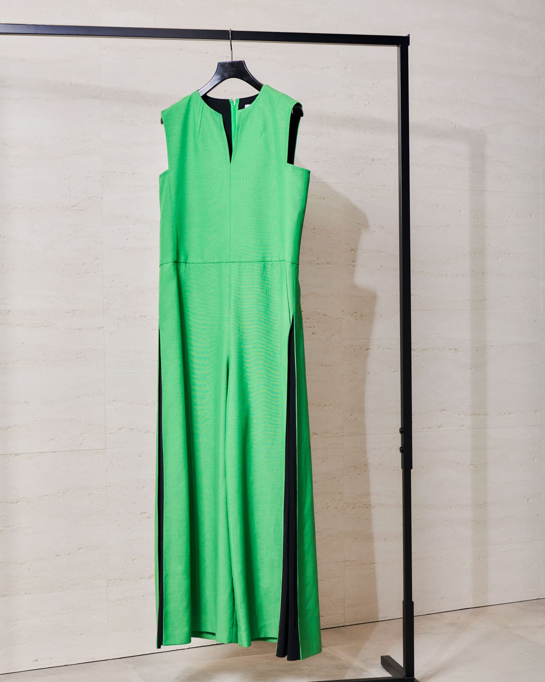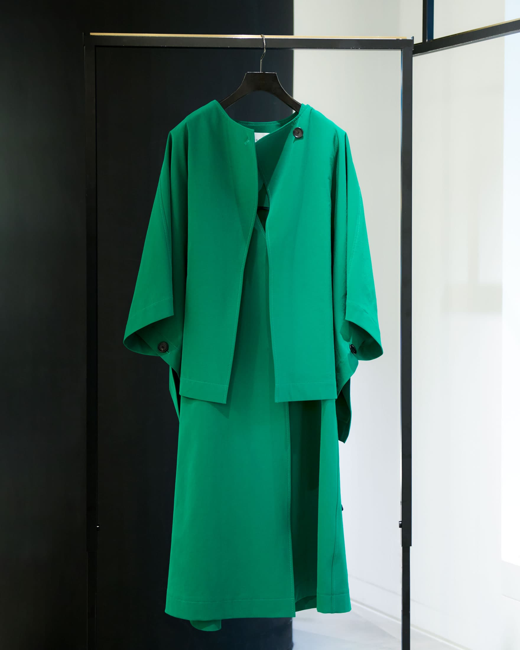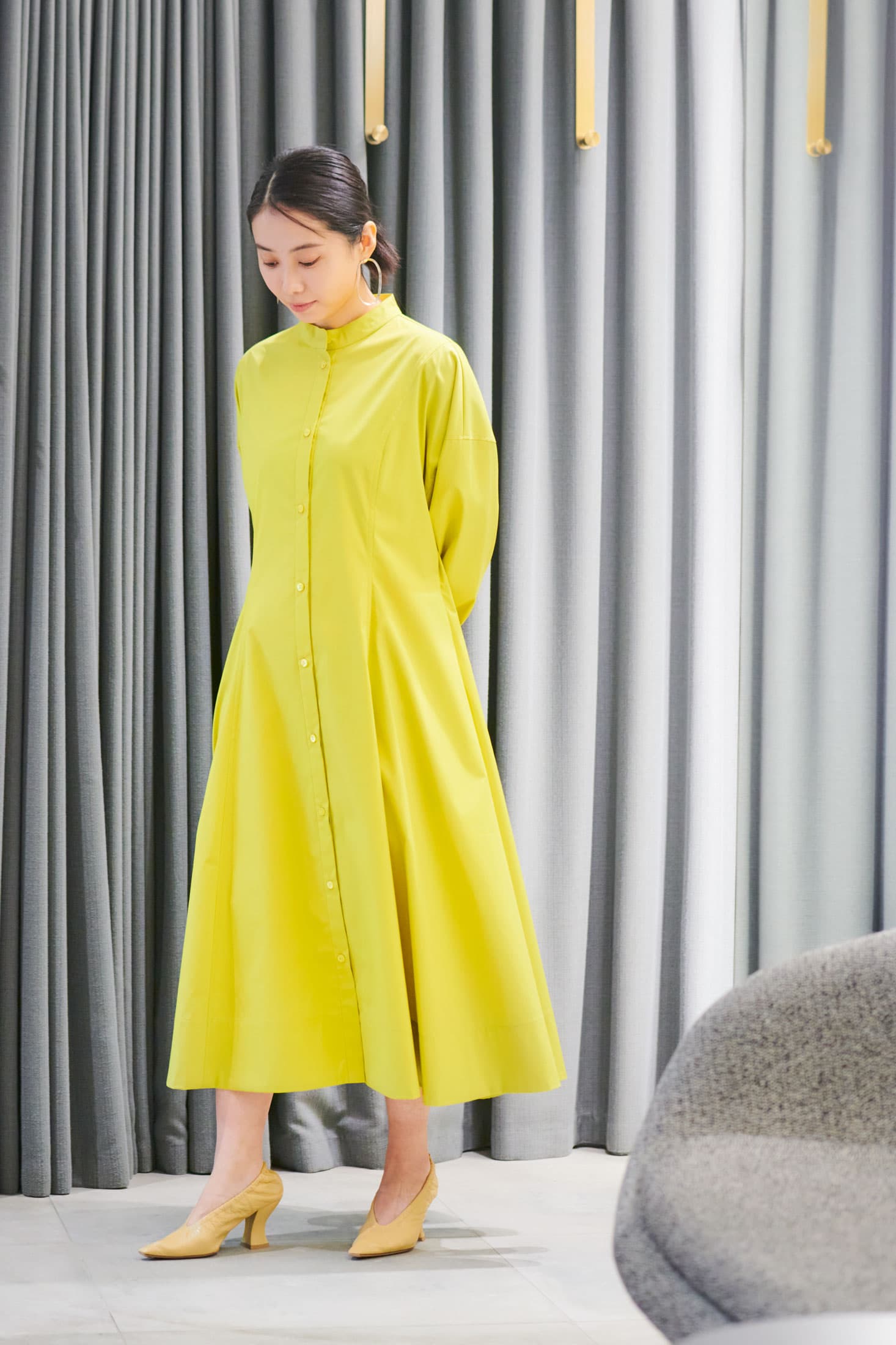 - そんな店内で一際目を惹くのが、彩り豊かなスプリングカラーのウエア群。3月8日の国際女性デーに合わせ、自分らしく、新しく純真で豊かな生活を願う女性のために作られたというアイテムの数々は、包み込むようなイエローや新緑のグリーンなど、華やかな色合いが素敵です。春らしく、気持ちも明るく。そんなムードにあふれたおすすめの5点を直井智子店長と、スタッフの趙瑩さんに紹介してもらいました。