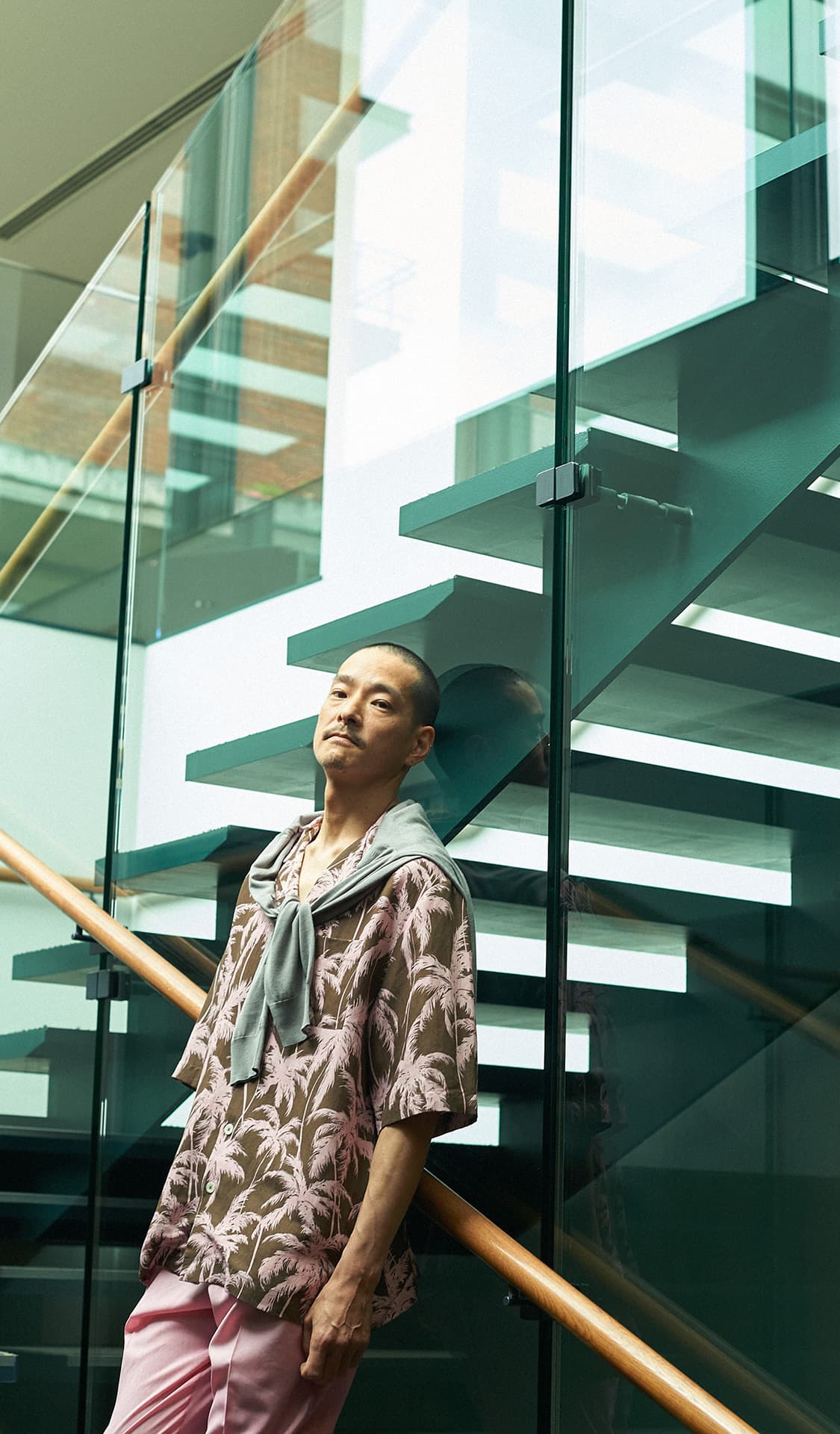 - 熊谷 隆志(以下K):やっぱり少し暑苦しくなりがちなので、柄 on 柄はできるだけ避けることですね。“トップスが柄ならボトムスはシンプルに、ボトムスが柄ならトップスはシンプルに”というのがセオリーです。若く見えがちな柄もシンプルなアイテムを合わせれば、大人の雰囲気を出せると思います。上質なアクセサリーを1つつけるだけでも凄く変わりますよ。もちろんお洒落に自信がある人は、柄と柄をぶつけるのもありだと思います。