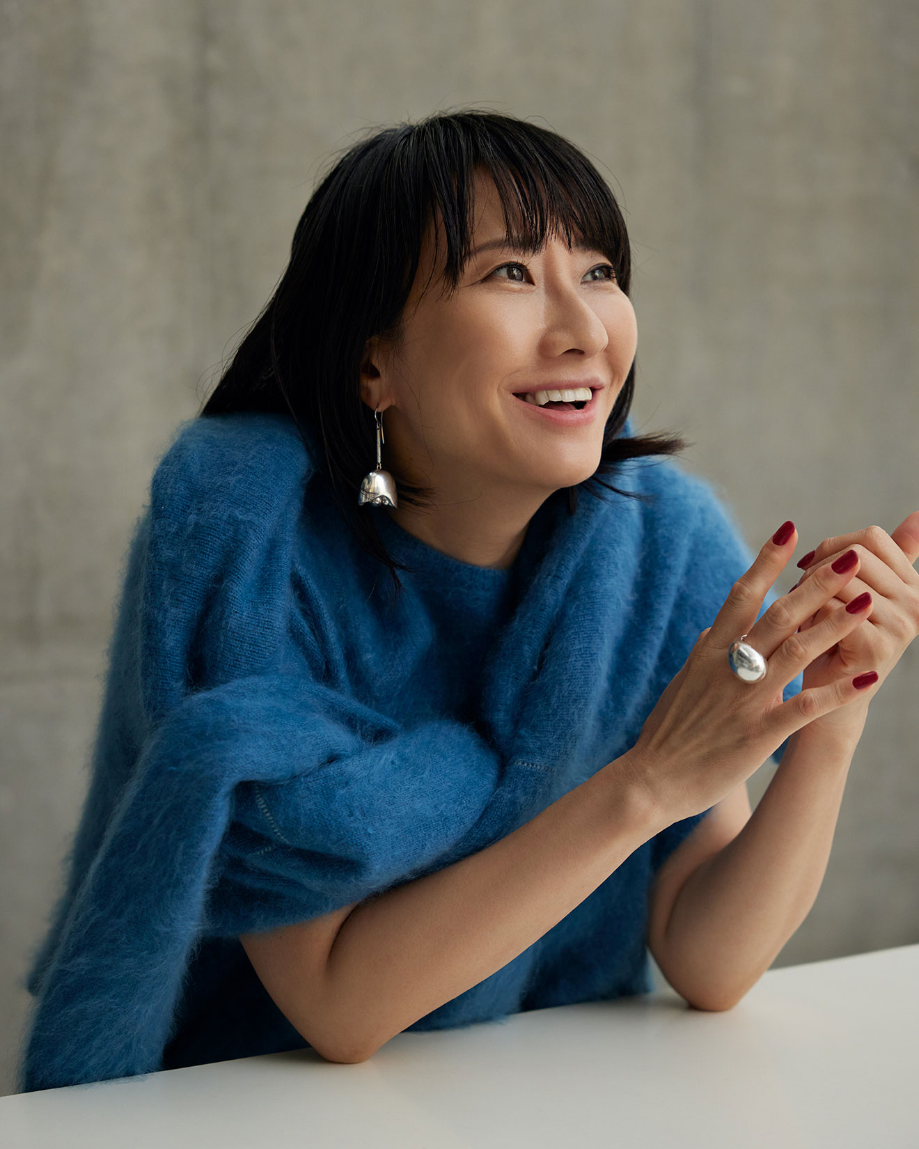- K : 洋服選びって、着る人のアティテュード、仕草に関わってきますよね。数え切れないほどの洋服を見てきましたが、ある程度年齢を重ねた今では、“品”をファーストプライオリティとして考えています。どんなアイテムでも品よく着こなせていればセンスよく見えるんですよ。お洋服のサイズ感をしっかり保ち、自分にフィットしたものを選ぶことも大切ですね。無理せず着られるものがやっぱりいいと思います。また、空気も乾いて、ドライな印象がある秋冬の街中では、着こなしのどこかに艶感を入れると目を惹くものになると思います。今日の4スタイルにも必ず艶感は入れるようにしました。野暮ったくならず洗練されたムードが表現できるんですよね。