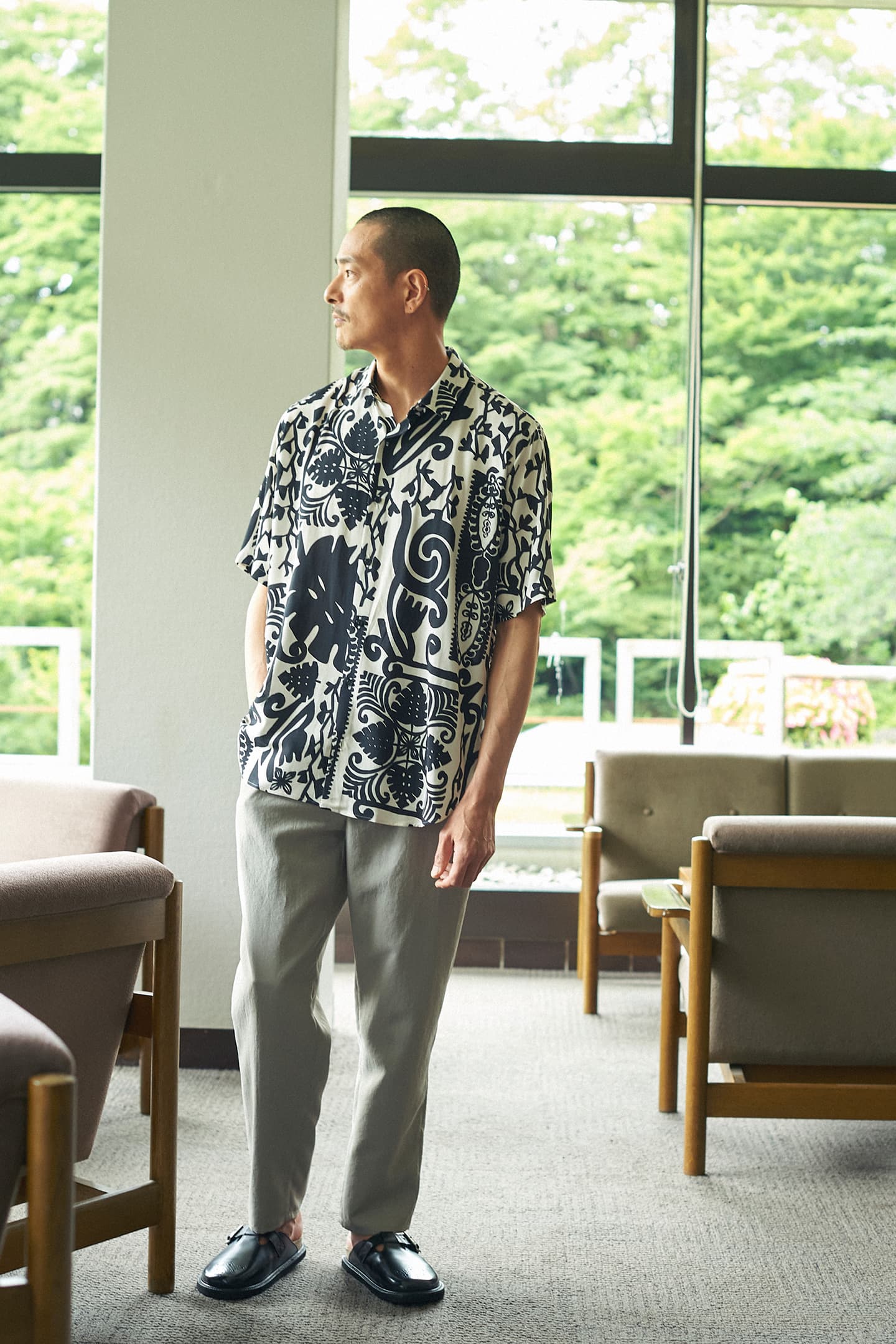 - K : 今は基本的にアロハが好きなので、柄にこだわらず色んなアロハを沢山持ってます。僕のファッションの入り口はトラッドだったので、柄といえばロンドンストライプや、ギンガムチェック、マドラスチェック、タータンチェックだったんですが、年を重ね、それがドットになり、アロハになり…。これまでの人生で全部の柄を着た気がしますね。